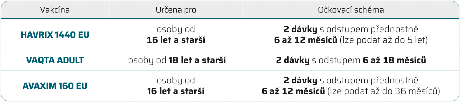 Dostupné vakcíny pro dospívající a dospělé