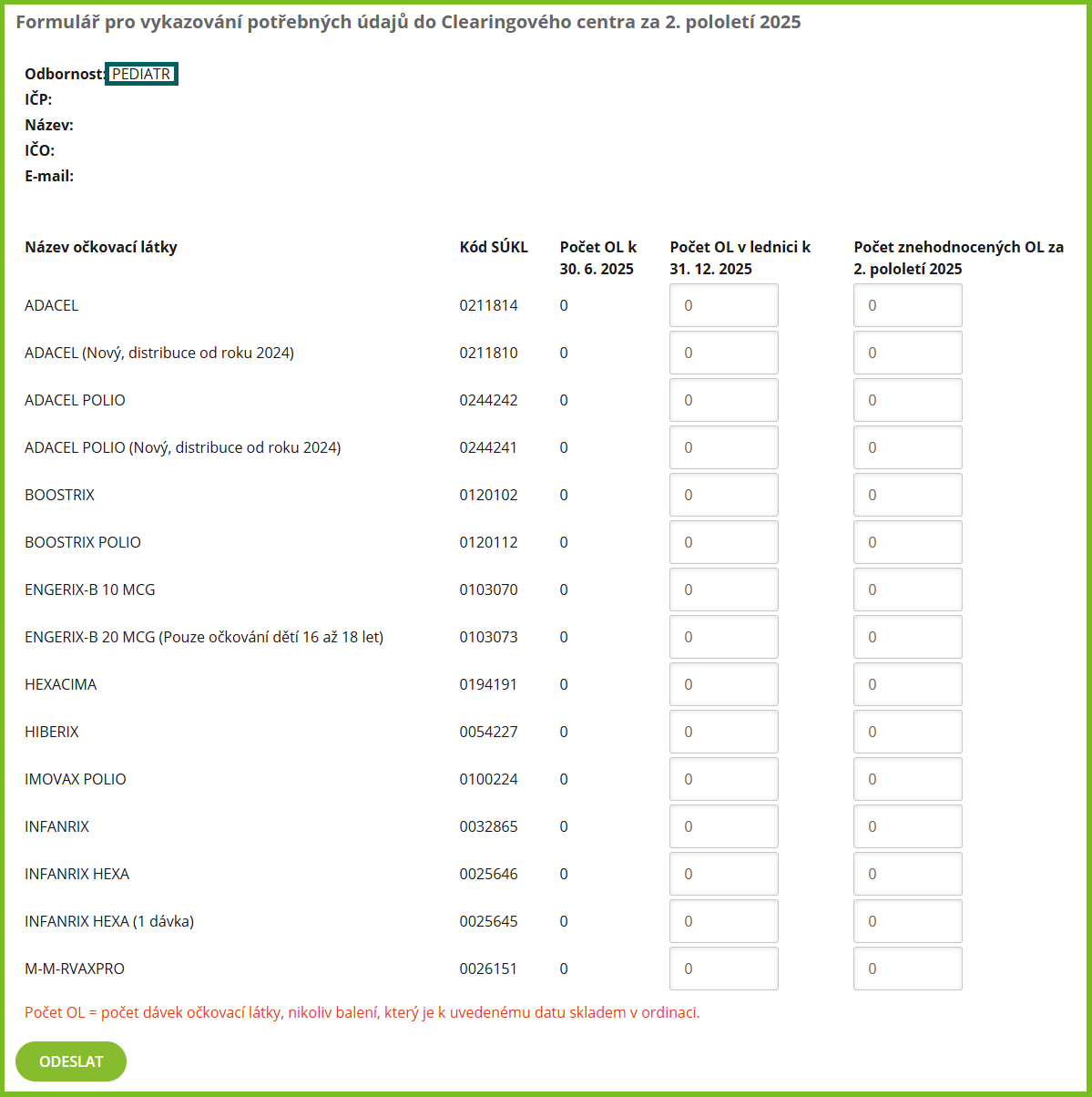 Pro doplnění informací Vám začátkem ledna 2026 zašleme e-mail s přehledem odebraných OL pro pravidelné očkování za druhé pololetí 2025.